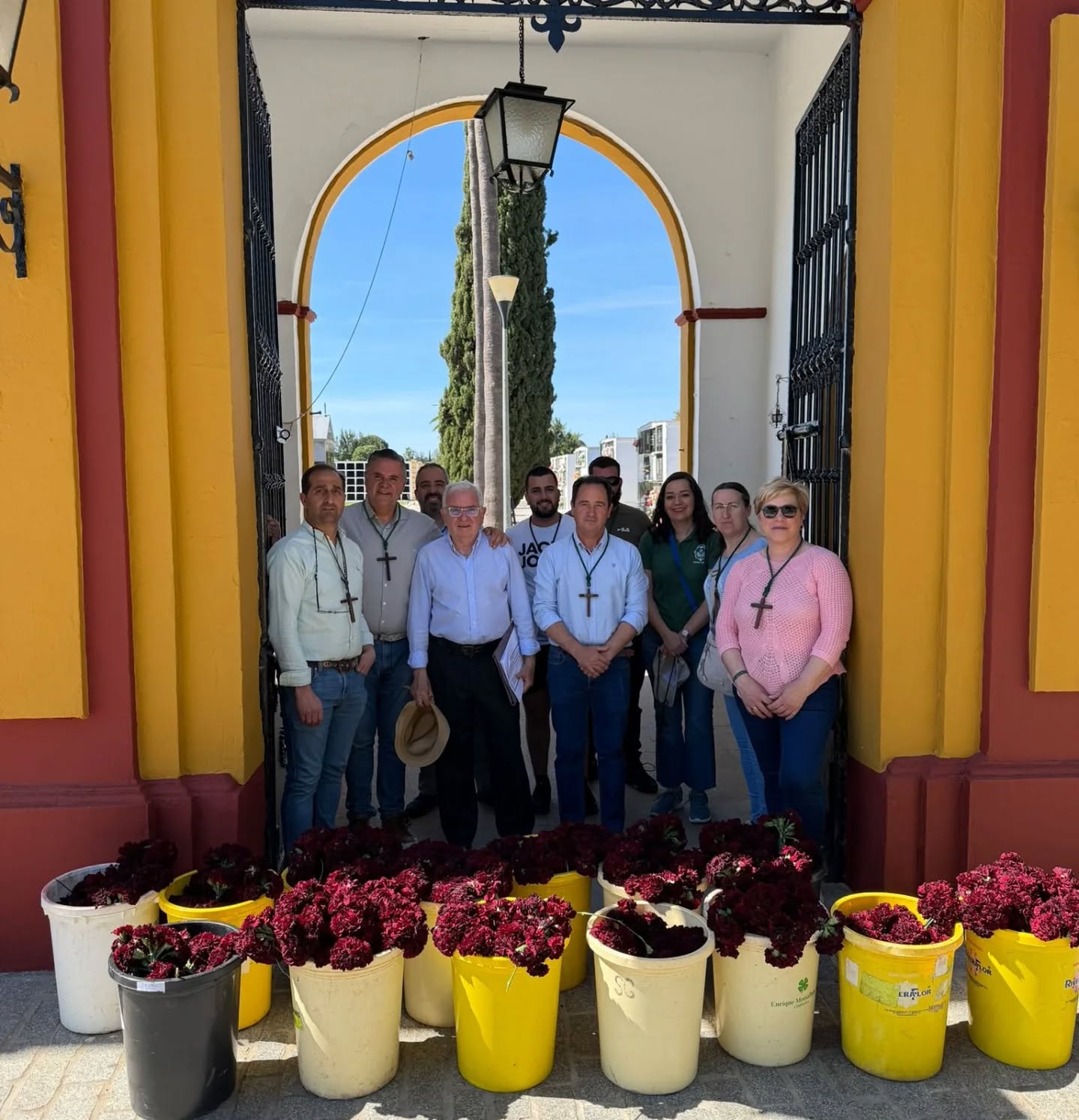 En la jornada del Sábado Santo, día de desmontaje y convivencia, un grupo de hermanos, entre ellos muchos jóvenes y niños, se afanan en preparar pequeños ramos con los claveles que acompañaron a nuestro Cristo el Viernes Santo, para, en la tarde del día más glorioso del año, depositarlos en las tumbas de nuestros hermanos que ya gozan de la presencia del Señor. De esta manera, esas flores que simbolizaban la Pasión y Muerte de Cristo, ahora cobran un sentido distinto, transformándose en vida, la vida que nos restituyó la Resurrección.